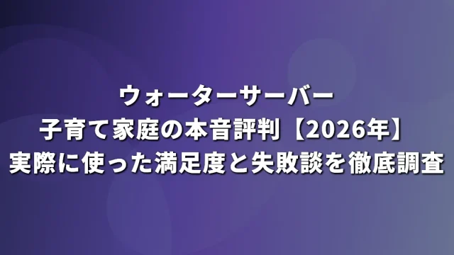 子育て・育児 ウォーターサーバー子育て家庭の本音評判【2026年】実際に使った満足度と失敗談を徹底調査