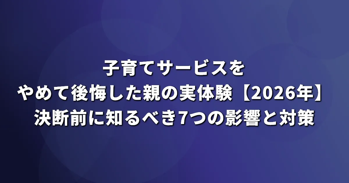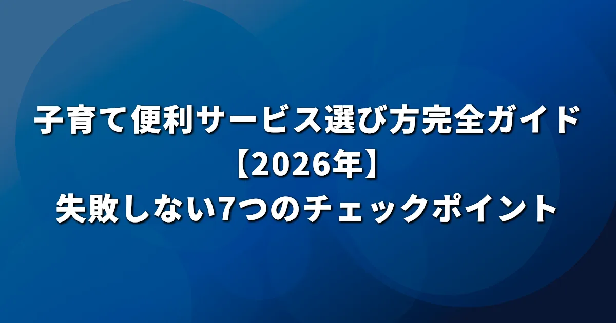 育児関連のサービス選びでさらに詳しい情報が必要な方は、育児サービス選び方完全ガイド【2026年】失敗しない7つのチェックポイントも参考にしてください。