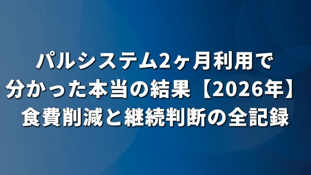 子育て・育児 パルシステム2ヶ月利用で分かった本当の結果【2026年】食費削減と継続判断の全記録 パルシステムを2ヶ月利用した実際の食費削減効果と継続判断のポイントを詳しく解説。初月と2ヶ月目の費用の違い、請求システムの仕組み、継続すべきかの判断基準まで体験ベースで紹介します。 2026.03.27 子育て・育児