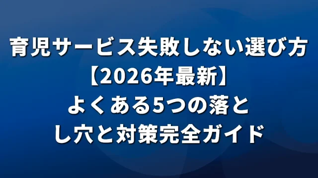 子育て・育児 育児サービス失敗しない選び方【2026年最新】よくある5つの落とし穴と対策完全ガイド 育児サービスの失敗は選定段階での調査不足、運用時の認識ズレ、特別ニーズへの対応不足が主原因。シングルマザーでも安心して利用できる失敗回避のポイントを実体験ベースで解説します。 2026.04.03 子育て・育児